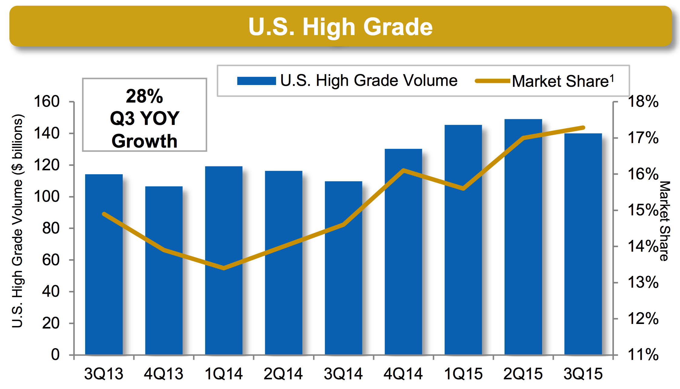 MarketAxess has been enjoying solid increases in market share across all of its core products. Particularly noteworthy was the company's increased share in U.S. high-grade corporate debt to an estimated 17.3% in the third quarter, up from 14.6% in the year-ago quarter, which continued a trend of impressive share gains since the first quarter of 2014.