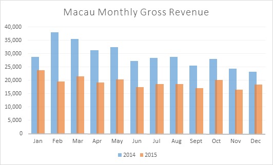 The company earned $1.88 per share through the first three quarters of 2015, compared with $2.62 at the same point in 2014. Earnings will have to stabilize just to justify the 15 earnings multiple, and Macau will probably have to grow for Las Vegas Sands' investors to get a satisfactory return.