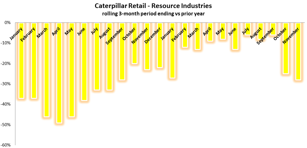 The story is similar for Caterpillar's Construction Industries in the grand scheme, although November's statistics were at least moving in the right direction.