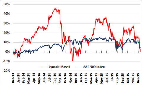 LyondellBasell's share price has had quite a ride over the past couple of years, with well over twice the volatility of the S&P 500 index. It appears as though it has experienced waves of excessive enthusiasm followed by abrupt reconsideration: