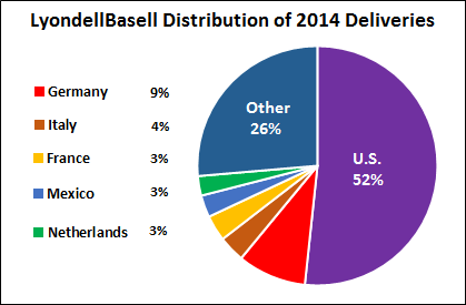 Its principal raw materials and most of its other chemical inputs are dollar-denominated, as are the prices of almost all of its products. LyondellBasell manufactures at sites in 14 countries and has joint ventures in four others, where it incurs local currency costs for labor, depreciation, taxation, and the like. In addition to the large amounts of gas- or oil-derived energy that its production processes employ, gas, petroleum and closely related petrochemical inputs, all of which are dollar-denominated, constitute virtually all of its variable costs. The company may actually be more vulnerable to dollar weakness (which would magnify its non-U.S. fixed costs) than to dollar strength.