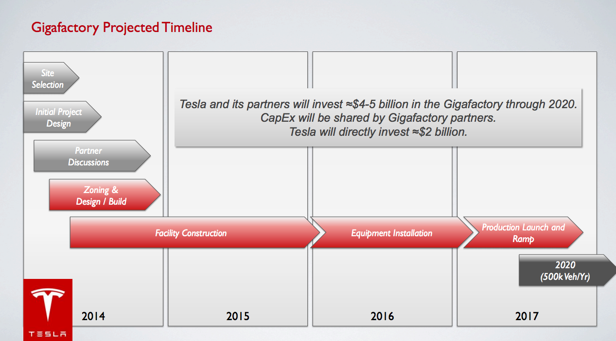 The factory is supposed to cost around $4 to $5 billion total through 2020 and the cost will be shared between Gigafactory partners, particularly Panasonic.