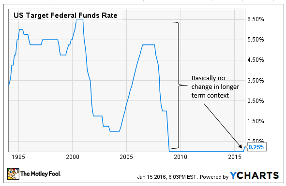 In practical terms, December's rate hike was more symbolic than anything else. The jump from 0% to 0.25% is teeny tiny.