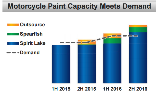 Better yet, the paint capacity woes which had plagued Polaris throughout 2015 are nearly over, as you can see in the graph below, and capacity is beginning to ramp up to match demand.