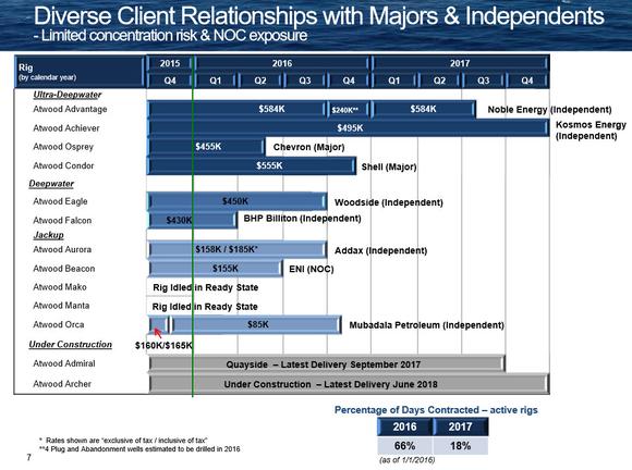 Those headwinds, however, are expected to blow much harder later on this year when even more of the company's rigs are expected to go off contract and could be idled. In fact, as the slide below shows only two of the company's rigs are currently under contract beyond 2016.