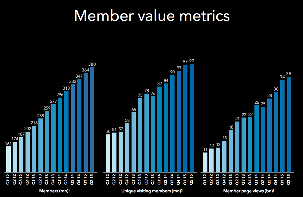 But if LinkedIn is unable to continue wooing users, this would flip the network effect on its head and turn from a virtuous cycle into a vicious one. Currently, LinkedIn is working hard on international expansion, and to broaden its reach beyond its core in technology companies.