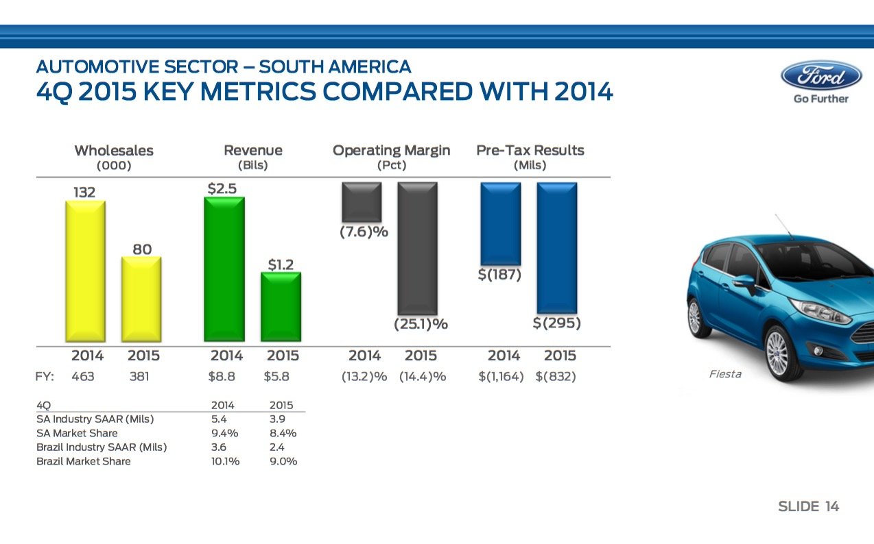 "We actually grew market share [in South America] for the full year, and we grew our share I think in each of the quarter leading up to [the fourth quarter] on a year-over-year basis," Ford CFO Bob Shanks told me when I asked him about South America last week.
