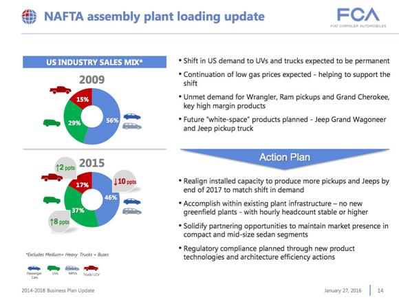 FCA doesn't want to build more factories in North America in order to make more SUVs, because those factories could become high-cost burdens in the event of a downturn. But Marchionne wants to maximize the profitability of the factories FCA already has in North America while the market is favorable.
