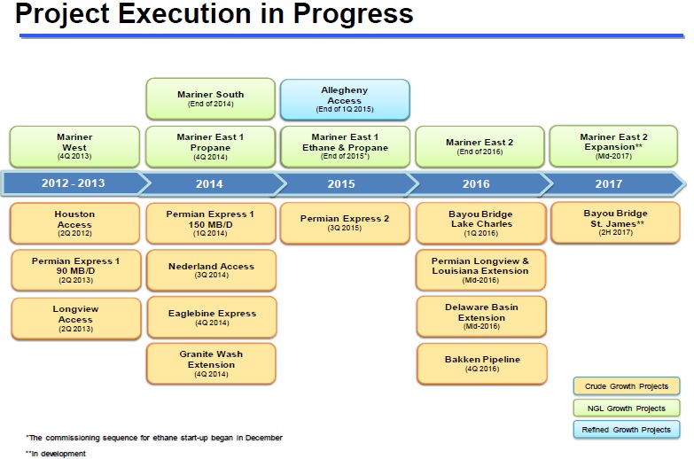 So unless Sunoco Logistics Partners has a major growth catalyst up its sleeve, such as a large backlog of organic growth projects or a giant dropdown pipeline from its two general partners, Energy Transfer Equity (ETE +1.11%) and Energy Transfer Partners (ETP +0.00%), its coverage ratios (and thus sustainability and growth potential) likely to fall over time.