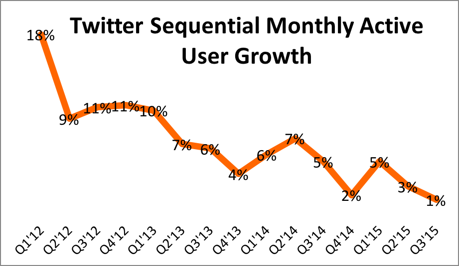 In Twitter's most recent quarter, user growth was unimpressive, if not worrisome. Sequentially, Twitter's monthly active users increased just 1%.