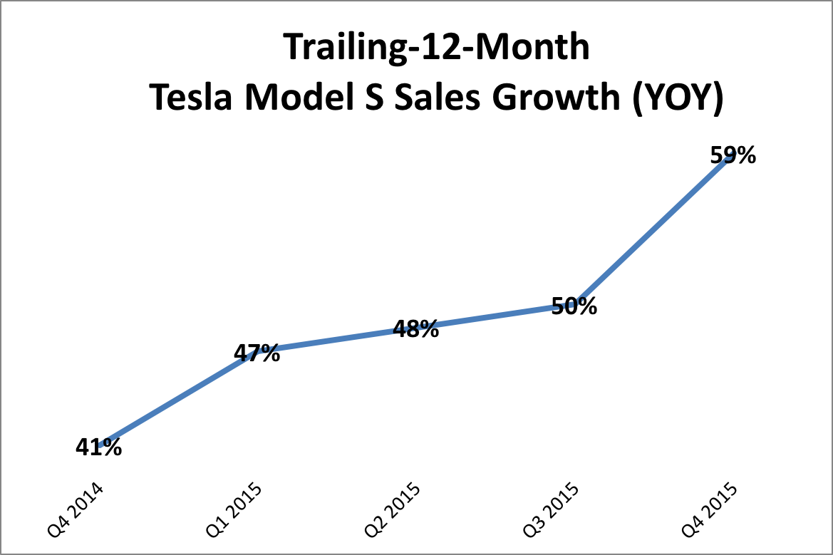Growth was the overall narrative for the Tesla in 2015, with its year-over-year growth in vehicle deliveries actually accelerating.