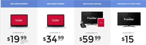 Frontier shows "starting at" prices on its website, but won't let customers price their full service package. Source: Frontier