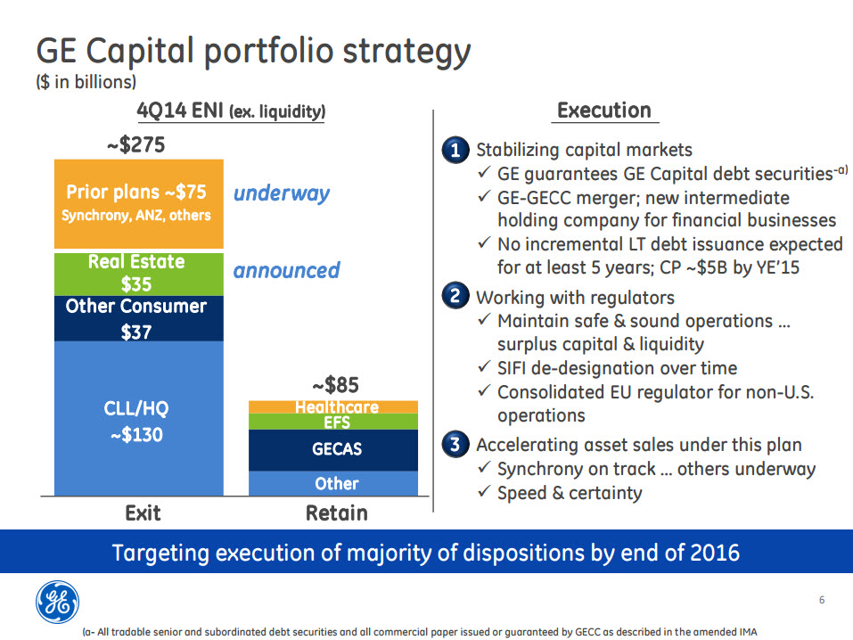Essentially, the only part of GE Capital that will remain will be operations tied directly to the Industrial side of the business.