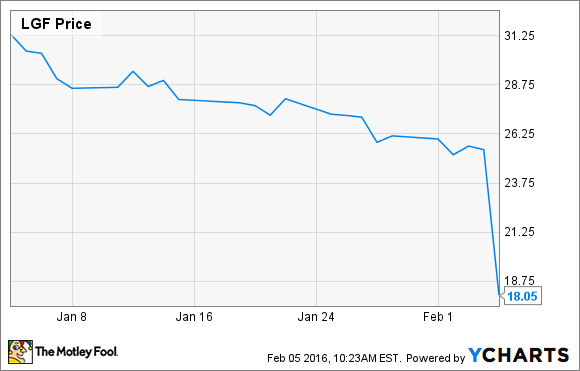Of course, those figures weren't released until February, but because box office results are widely reported, Lions Gate stock fell in January in advance of the earnings report. The market already knew numbers weren't going to be good, and the steady stock decline in January reflected that.