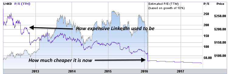Officially, LinkedIn isn't profitable. But most investors measure the company by its non-GAAP earnings -- which discount the effect of stock rewards for employees. After last week's drop, the company now trades for roughly 38 times trailing non-GAAP earnings.