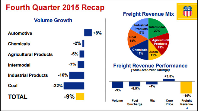 Freight revenue dropped 16% year over year, with volumes declining in all business groups except for automotive shipments.