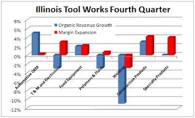 While the evidence of a bottoming in industrial conditions isn't compelling, it appears Europe is helping out. Illinois Tool Works' fourth-quarter organic revenue shrank 0.6%, with North America down 1.6%, but the EMEA region (Europe, Middle East and Africa) produced a 1.9% increase.