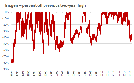 Take Biogen (NASDAQ: BIIB). It was the second-best stock to own over the past 20 years, increasing 60,210%. But most of the time, shares have been in some stage of pure agony: