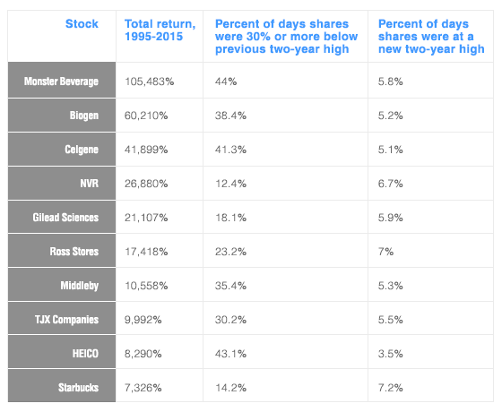 It's hard to grasp how the best-performing stock of the last 20 years could spend the majority of that time with returns that would make you want to vomit. It's easy to think that the single-best investment to own is one that would make us smile every morning we woke up owning it.