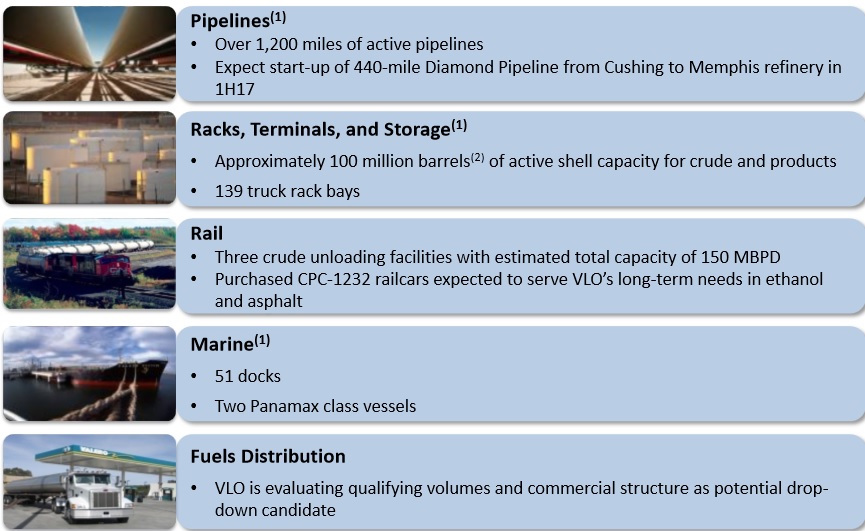 Valero Energy Corp.'s existing midstream assets may provide the still small Valero Energy Partners' several years of exceptional growth, the sheer magnitude of those assets are much smaller than other refiners, such as Phillips 66, Marathon Petroleum, and Royal Dutch Shell, all of which also sponsor fast growing midstream MLPs.