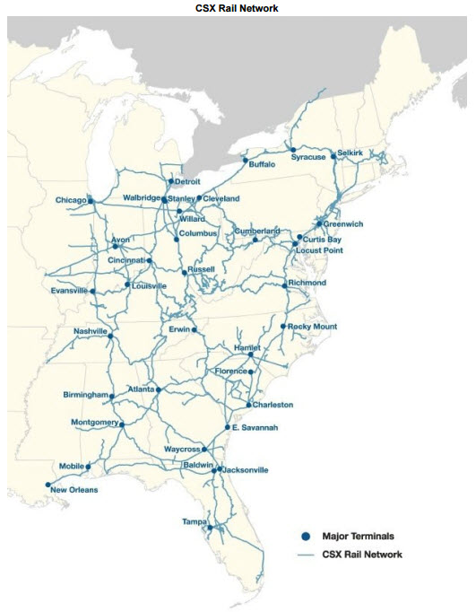 CSX is one of the largest U.S. railroads. Its route lines mainly cover the eastern third of the U.S., and it operates through four major corridors to connect to important U.S. and Canadian gateways, with 21,000 route miles that connect 23 states east of the Mississippi River, as well as D.C, Ontario, and Quebec.