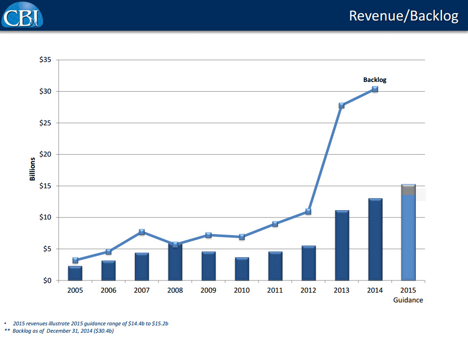 Continued growth in the backlog, as well as the recent acquisition of Shaw Group, has helped drive growth over the past few years. As Philip Asherman, CB&I's president and CEO, said in the most recent quarterly call: