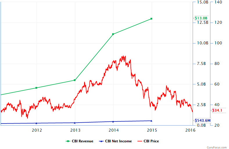 Because of the selling pressure, shares are more than 50% off their highs in early 2014. But CBI may be getting unjustly compared with the rest of the sector, and the company continues to see increases in revenue and cash flow on the back of a commodity meltdown.