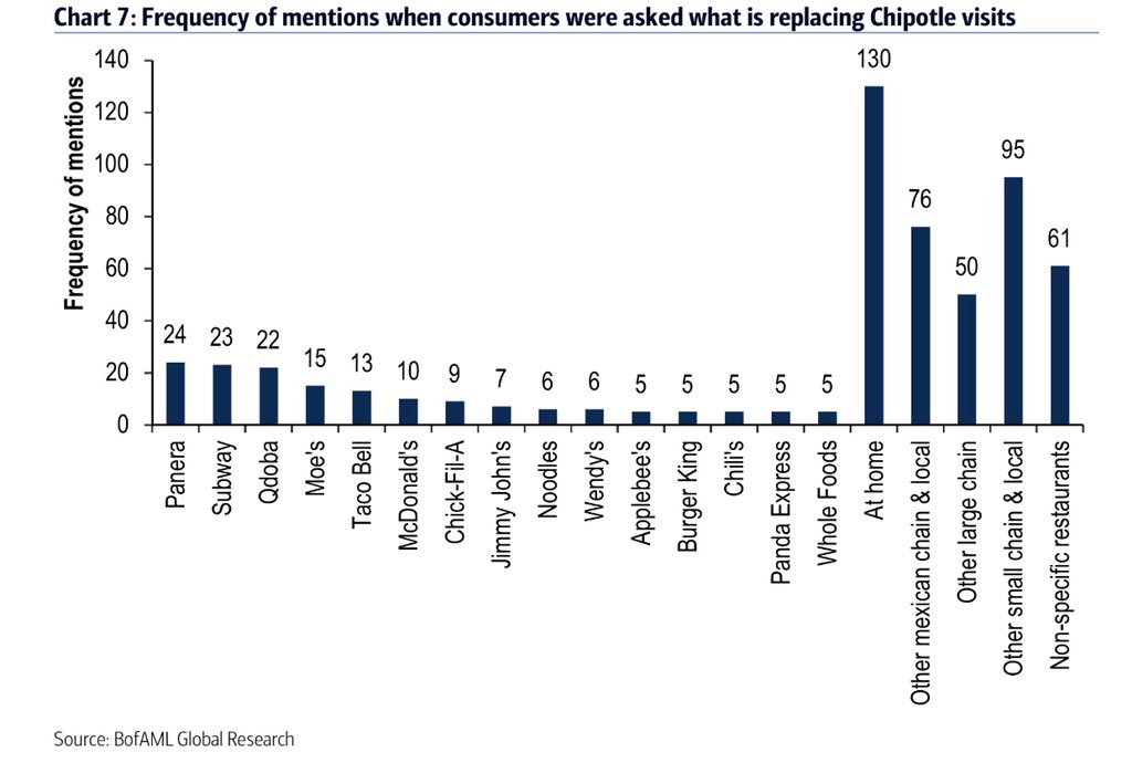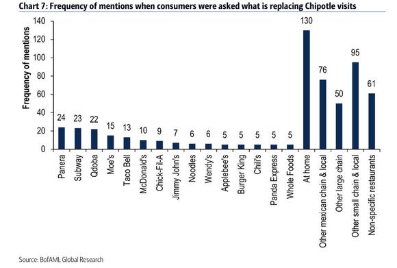 According to a Bank of America Merrill Lynch survey, though, it looks like Panera Bread (PNRA +0.00%) stands to gain the most of anyone. When asked which restaurant they'd visit if they were swearing off Chipotle, the fast-casual sandwich chain garnered the most mentions. Subway was a surprise runner-up.