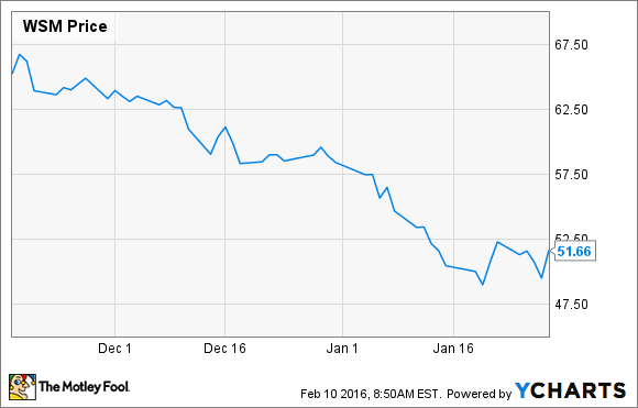 Williams-Sonoma (WSM 1.55%) stock has fallen steadily since the company offered up a weak fourth-quarter outlook during its third-quarter 2015 earnings conference call way back in Nov. 2015.