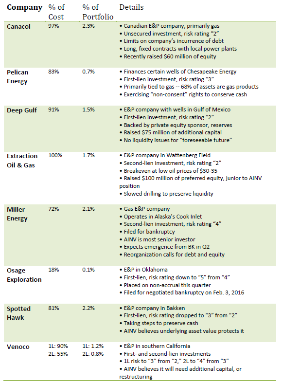 Business-development company Apollo Investment Corporation (AINV +0.83%) left no stone unturned on its most-recent conference call, providing spectacular insight into its largest oil and gas investments.
