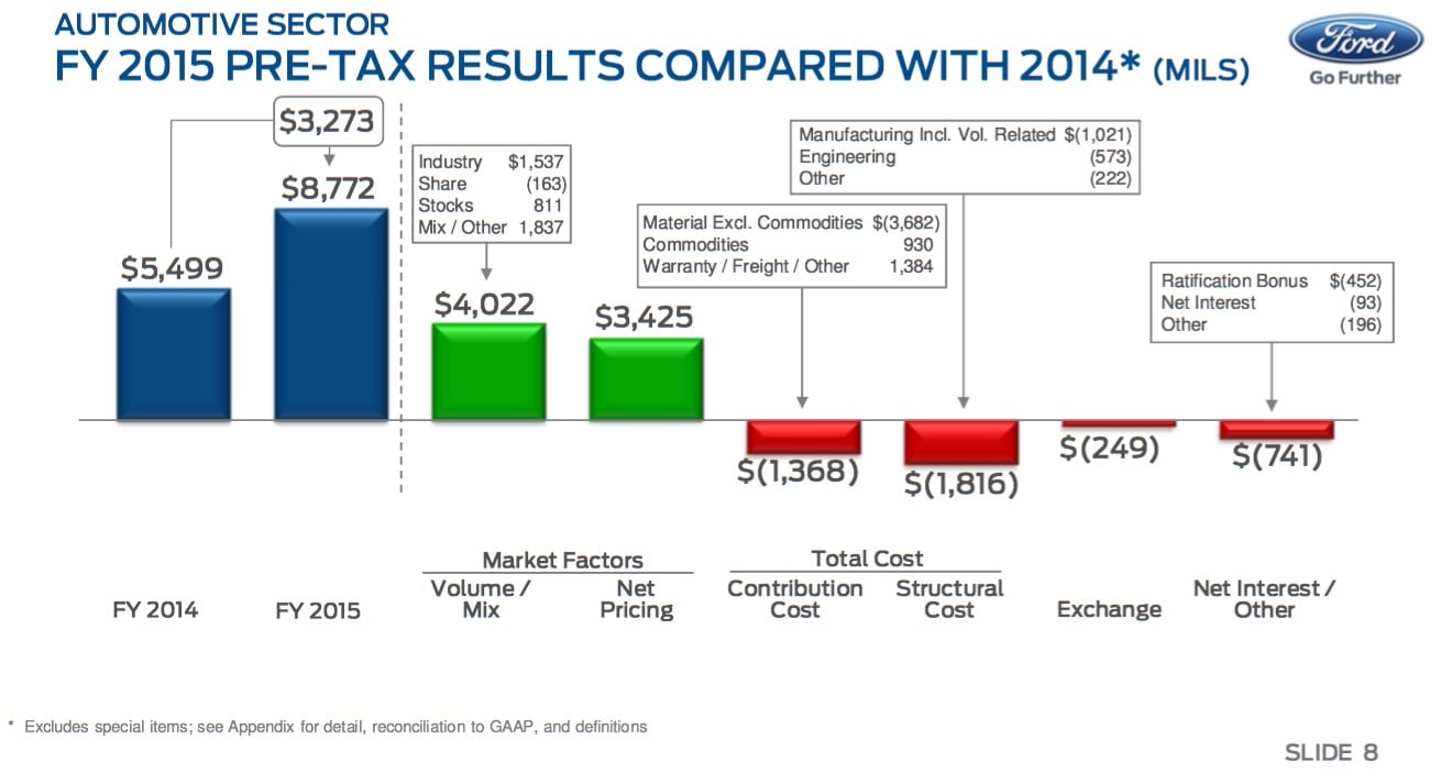 It turns out that Ford CFO Bob Shanks explained that in some detail; check out this slide from Ford's 2015 earnings presentation last month.