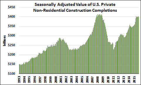 At the end of July, the consensus of forecasts compiled by the American Institute of Architects was for an 8.2% increase in the value of U.S. nonresidential construction in 2016 after 8.9% in 2015.