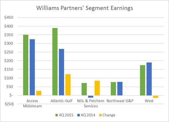 While Williams Partners grew its earnings and cash flow overall, the company's operations on a segment level did show some weakness because of its exposure to commodity prices. Here's a closer look at each segment: