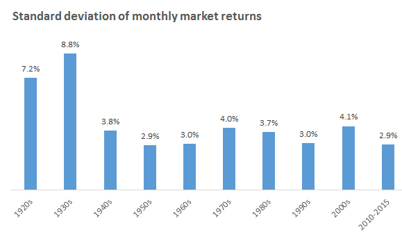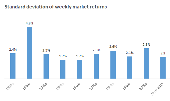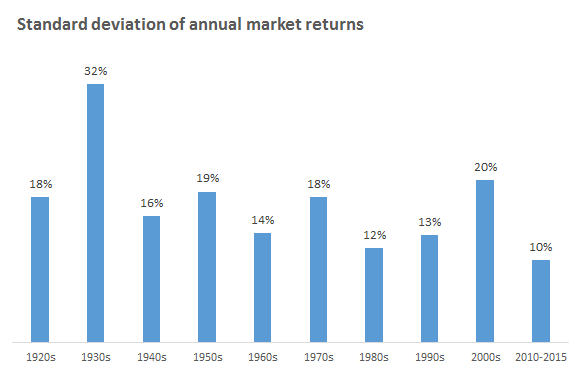 The wild 2000s had about the same volatility as the 1950s and 1970s. The last five years has actually been one of the least-volatile periods in history.
