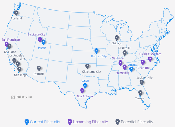 San Francisco will join other Fiber cities like Atlanta, Austin, Charlotte, Kansas City, Nashville, Provo, Raleigh-Durham, Salt Lake City, and San Antonio.