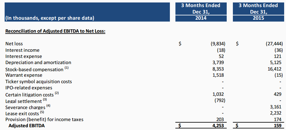 While the plunge in adjusted EBITDA is concerning, it's worth noting that the fourth-quarter figure is likely worse than it would have been under different circumstances. As you can see below, a big chunk of the net loss is attributed to stock-based compensation, which reflects the departure of many high-level executives.