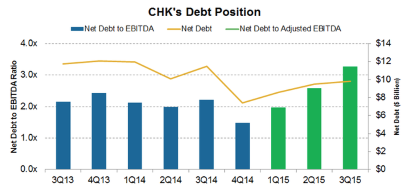 It's safe to say that Chesapeake is in the definition of a cash crunch. As it stands today, the company can simply not survive in its current state. Free cash flow per share has been negative since 2006, and net debt-to-EBITDA levels are starting to skyrocket. Competitor Linn Energy (NASDAQ: LINE) has been scrambling to get its biggest debt holders to accept looser terms or perhaps a debt-to-equity swap. Chesapeake probably realizes that this is one of its only options as well.