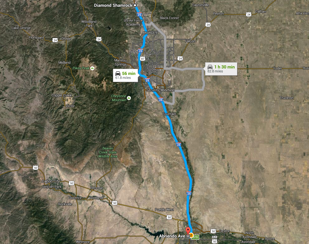 Four months after Autosteer was beamed to Tesla's fleet, it was time to put the technology to the test. The goal was to head south from Monument toward Colorado City to see how far I could drive without taking control of the wheel or touching the pedals with my feet. I thought I'd be lucky to make it through the entire stretch of Colorado Springs, which includes three- and two-lane highway driving and at least one construction zone. So, I figured there would be no need to plan for anything further than Colorado City, which was about 87 miles away from my starting point.