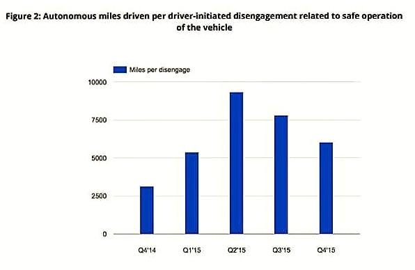 In January, Google released a report covering the 14 months between September 2014 and November 2015. It contained data on every incident in which a human driver had to take control of one of Google's autonomous vehicles and why. And unfortunately, incidents in which the human drivers take control for safety reasons have been growing more frequent: