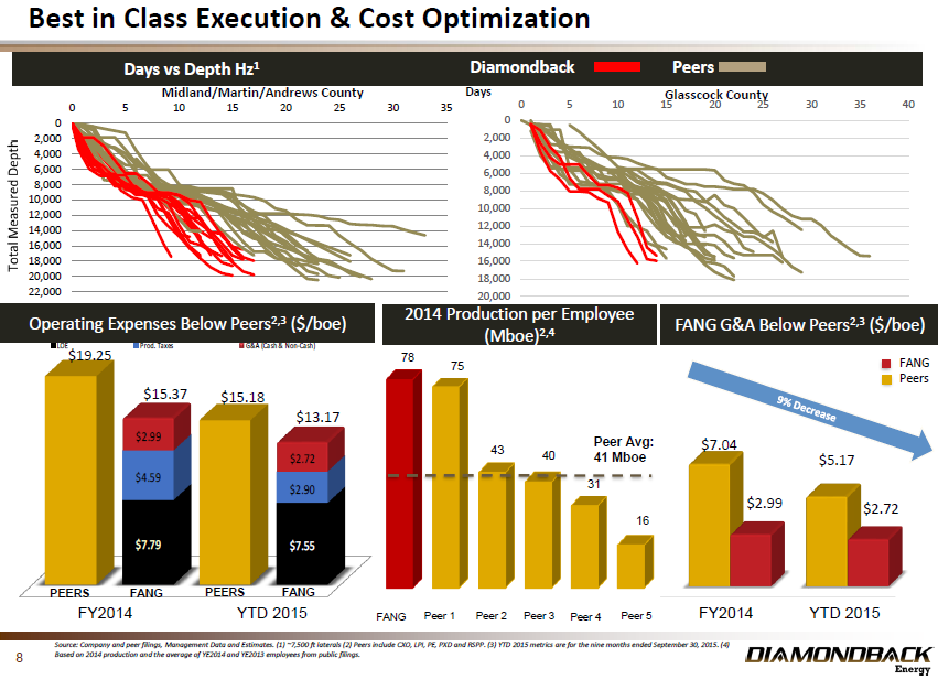 We notice how the company has consistently lower drilling days per well, compared with peers operating in the same regions. Also, operating expenses and general and administrative expenses have been significantly lower than those of its peers.