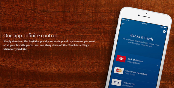 An ad from PayPal's home page promoting the company's mobile app and "One Touch" payment feature. Image source: Paypal.