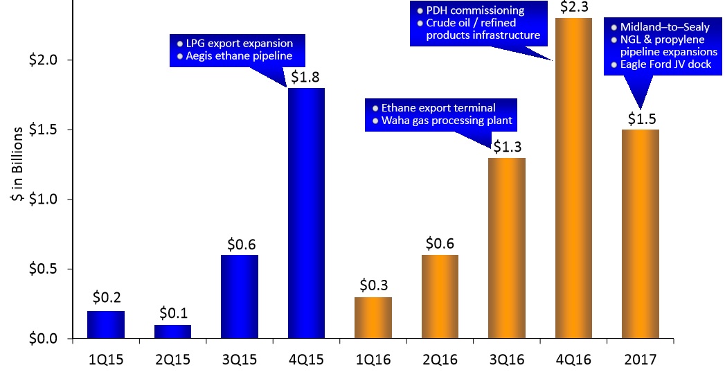 In this case, Enterprise's growth will probably be courtesy of $4.5 billion in new projects that are coming online.
