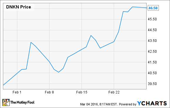 What: The coffee chain reported Q4 and full-year results on Feb. 4. Those numbers were relatively encouraging with Dunkin' Donuts locations showing Q4 comparable store sales growth of of 1.4% for the full year, despite a 0.8% drop in the quarter. The company's Baskin' Robbins brand posted 6.1% comparable store growth for the year and a 4.4% gain in Q4.