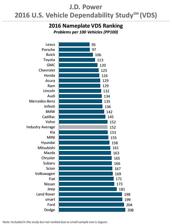 Source: J.D. Power 2016 U.S. Vehicle Dependability Study (VDS)