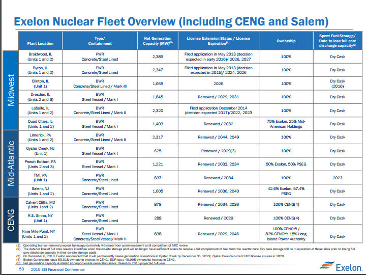 Exelon's nuclear power fleet. Source: Exelon.
