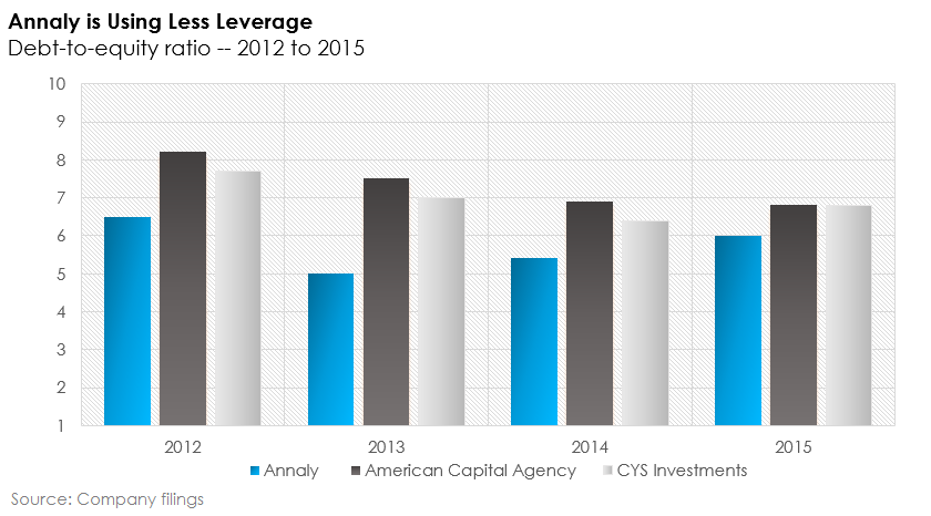 The difference in leverage between Annaly and its peers looks small, but if Annaly levered its $12 billion in total equity by 6.8 -- which is the same as American Capital Agency at the end of 2015 -- rather than where it stands today at just 6, Annaly would add $9.6 billion of debt. That would add a substantial amount of risk, and based on the current environment, where interest rates are expected to stay low, but will enviably rise, I think investors should appreciate Annaly's more defensive mind-set. However, not everything Annaly is doing is conservative.