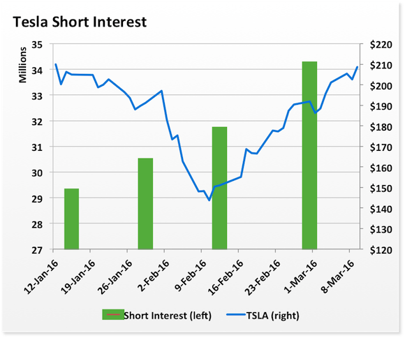 The Nasdaq has just published the latest short interest figures for the end of February, and surprisingly short interest actually increased, setting a new all-time record of bearish sentiment for the electric-auto maker. We're now talking about a little over 34 million shares being held short, or a whopping third of public float.