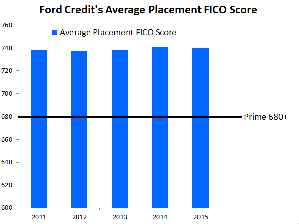 The story is similar for GM's crosstown rival, Ford Motor Company (NYSE: F), which has improved its already high average FICO score loan placement.