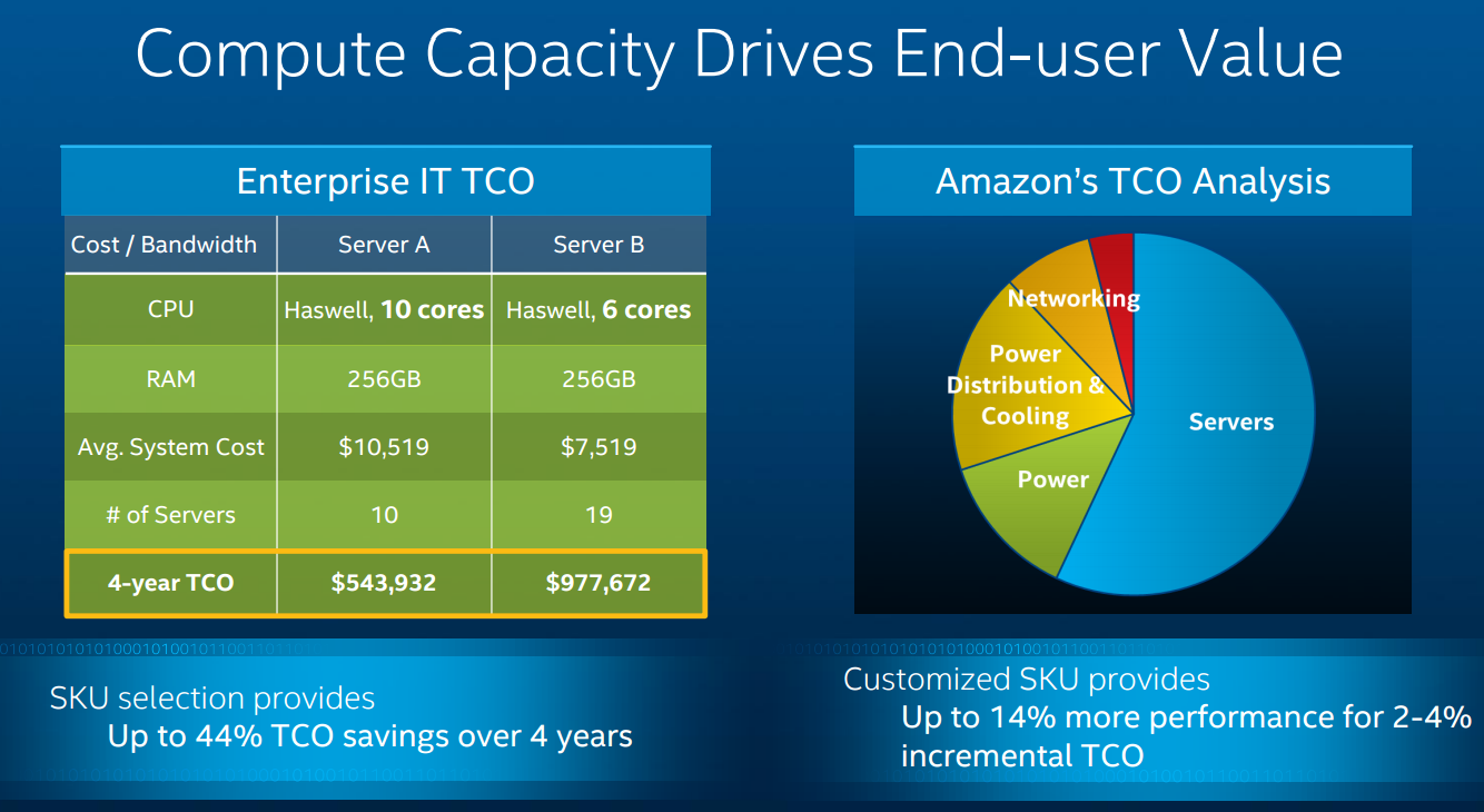 In fact, at Intel's November 2014 investor meeting, Bryant showed the following total cost of ownership analysis from Amazon.com (AMZN 1.80%), a major buyer of Intel's server chips: