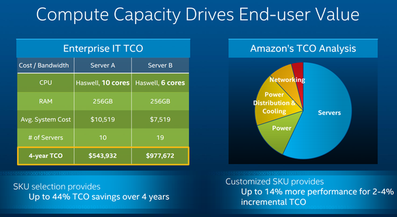 In fact, at Intel's November 2014 investor meeting, Bryant showed the following total cost of ownership analysis from Amazon.com (AMZN +0.19%), a major buyer of Intel's server chips: